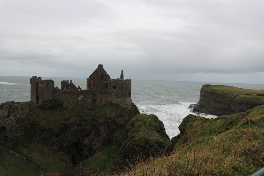 – By the time we got to Dunluce Castle, the weather was really starting to take a turn. The wind was enough to almost knock me over while I stood near the cliff edges to take some photos, and the water below was furious. That’s the only word I can think of to describe it; absolutely, viciously, furious. But it was stunning – even when you can barely stay on your feet, looking at this ruined castle up on the cliffs is a pretty incredible experience. Because the weather was getting so nasty, we didn’t stay long – we physically couldn’t, the wind was so strong. We were also getting pretty hungry, so we moved on to our next stop to wait the wind out a bit…